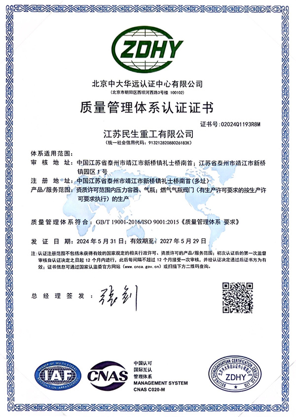 ISO9001質(zhì)量管理體系認(rèn)證證書