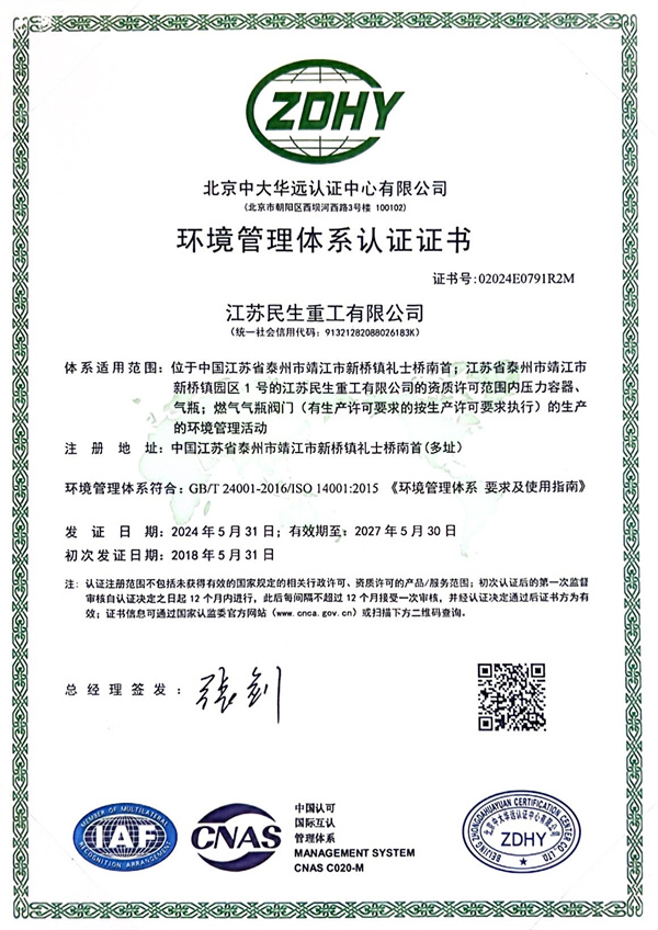 ISO14001環(huán)境管理體系認(rèn)證證書